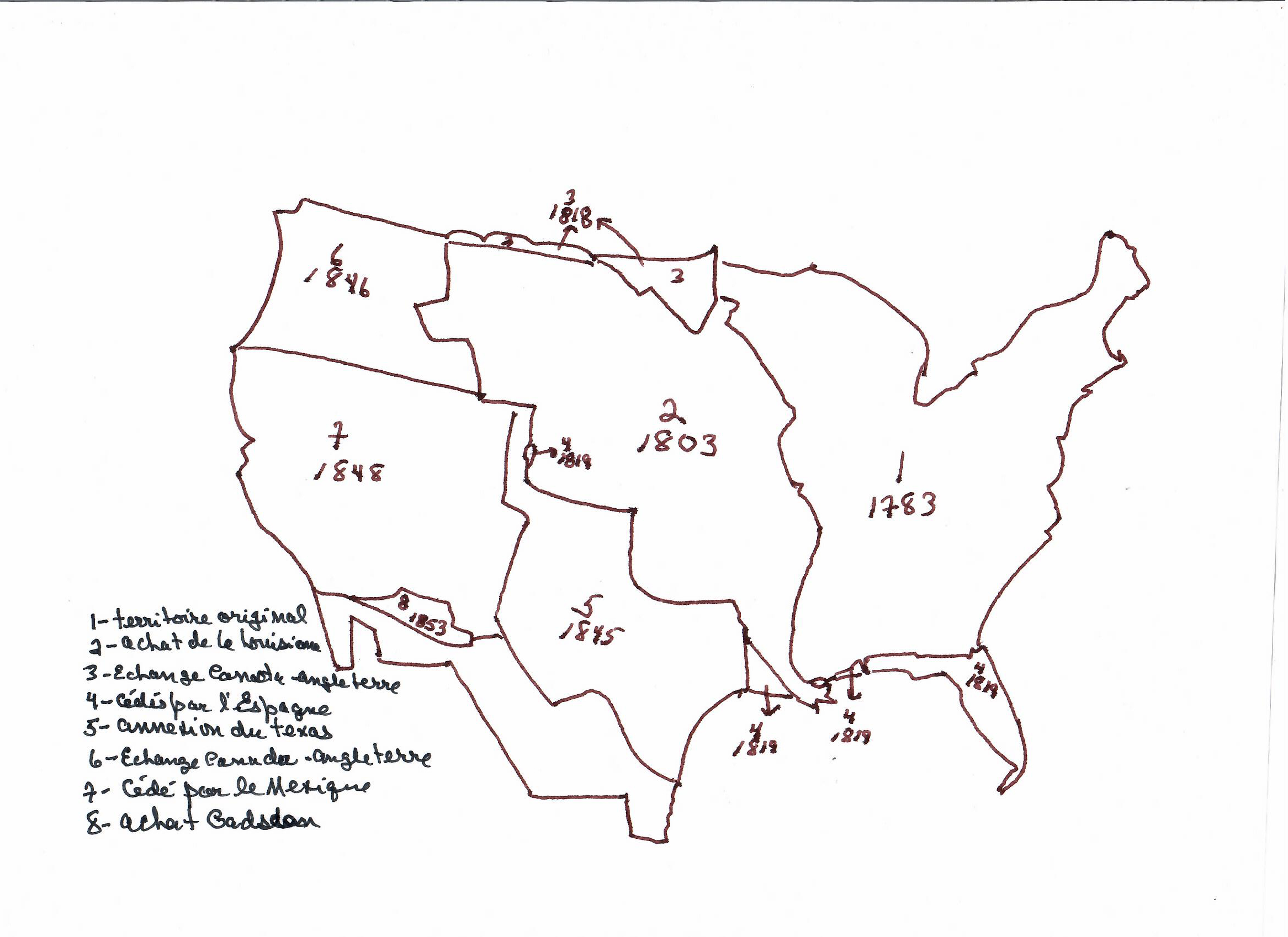 L’expansion de l’esclavage dans les nouveaux territoires américains s’est imposée dès l’origine des États-Unis pour culminer en 1861 avec la guerre entre certains états esclavagistes et les autres états. Une carte sommaire illustre la formation du territoire continental des États-Unis depuis son indépendance.
